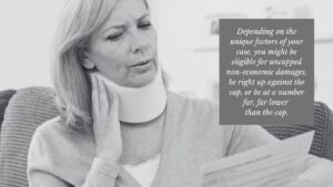 To give a concrete example, suppose you were in an accident in which you sustained a serious back injury. In that scenario, your medical expenses would be economic damages, as would payment for future lost wages if you could no longer work due to your injuries. Of course, economic damages don’t account for the entire story. With an injured back, you might be facing chronic pain. You may be unable to play with your children anymore. You may have PTSD, anxiety, or depression due to the accident and its aftermath.