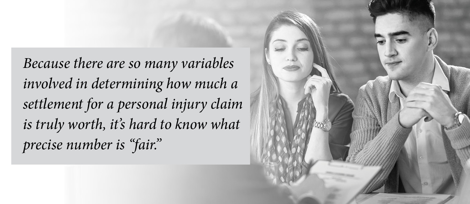 Because there are so many variables involved in determining how much a settlement for a personal injury claim is truly worth, it’s hard to know what precise number is “fair.”