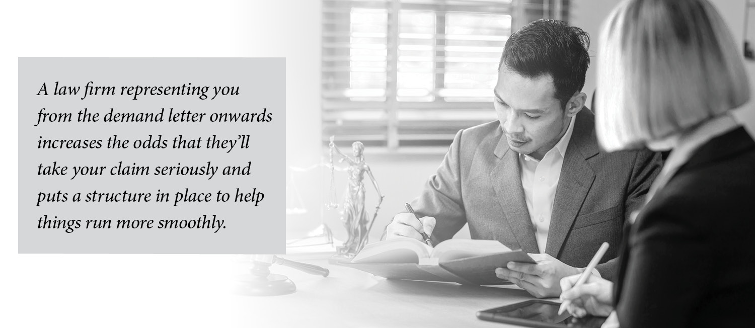 A law firm representing you from the demand letter onwards increases the odds that they’ll take your claim seriously and puts a structure in place to help things run more smoothly. Not only will your attorney help you better know what to expect throughout the process, but they will also know what to do to help motivate the other party to move quickly so that your issue can be resolved without undue delay.